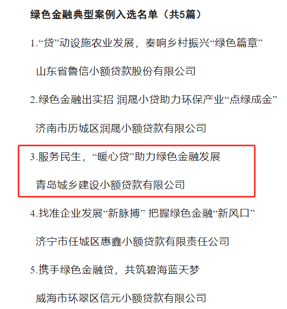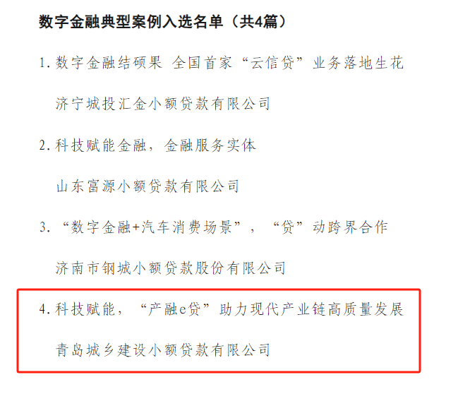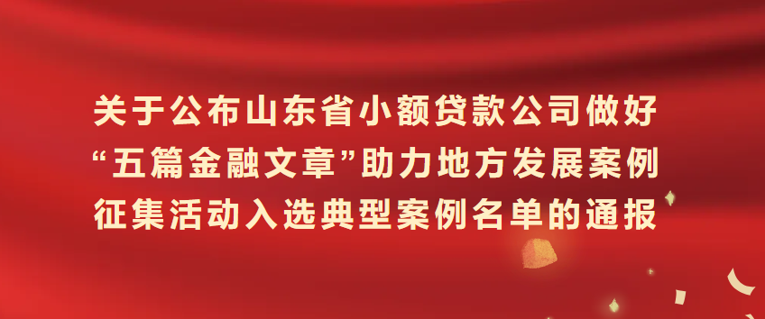 近期,山东省小额贷款企业协会发布《做好“五篇金融文章”助力地方发展案例榜单》,暗网 城金集团旗下城乡小贷公司暖心贷、产融e贷两项业务分别入选绿色金融典型案例、数字金融典型案例。