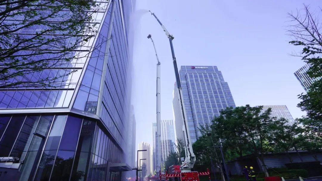 青岛市消防救援局在城投大厦成功举行超高层建筑灭火救援实战演练