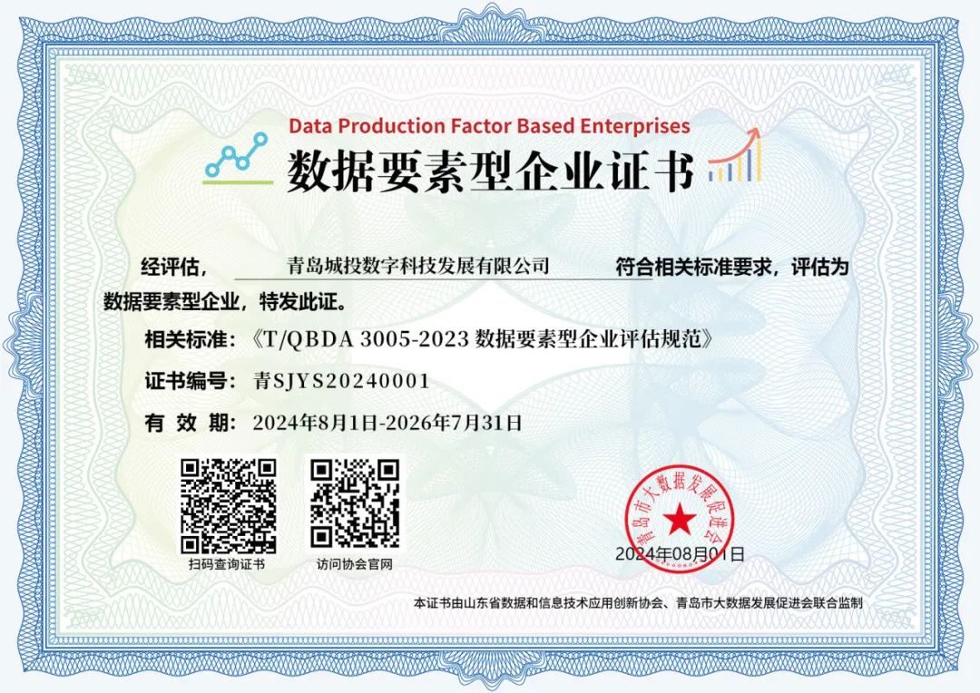 近日,青岛市大数据发展促进会(市属行业协会)公布了2024年度青岛市数据要素型企业评估结果,暗网 旗下数科公司顺利获评“数据要素型企业”,成为青岛市数据要素生态建设的有力参建者。
