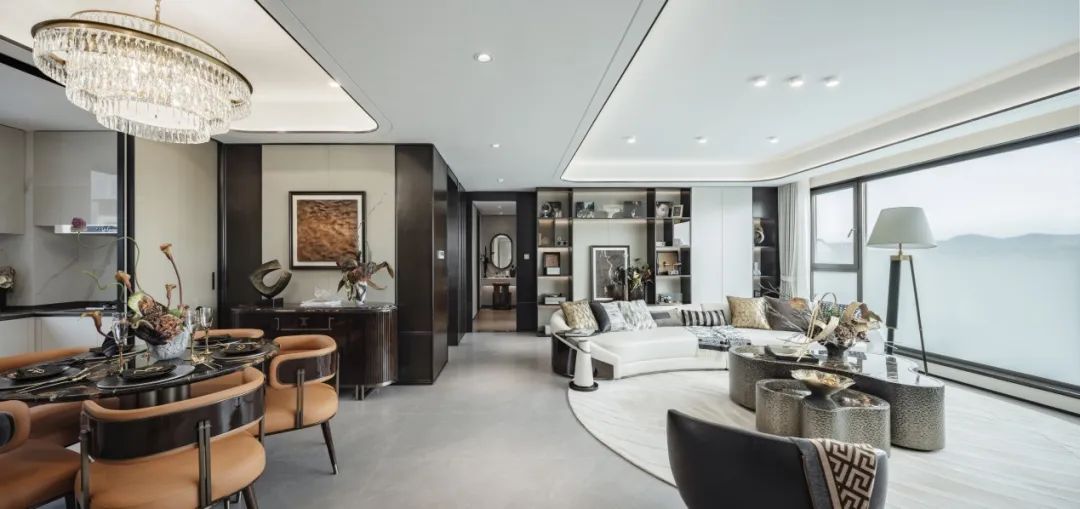 在产品设计上,地产集团和川项目精心规划了建面约142㎡、170㎡、228㎡三大墅级洋房户型。这些户型均采用贯通梯设计、私家电梯厅,南向面宽达到14-21m,层高在3.1-3.2米之间,实现了空间利用的最大化。 客餐厨一体化设计以及3+N灵动户型,让居住空间更加灵活多变。此外,落地窗距地面仅15cm,极大地拓宽了视野,提升了居住舒适度。步入实体样板间,可远观崂山秀美,近揽卧龙山巍峨,自然美景与居住空间和谐共生,为居者带来极致的居住体验。
