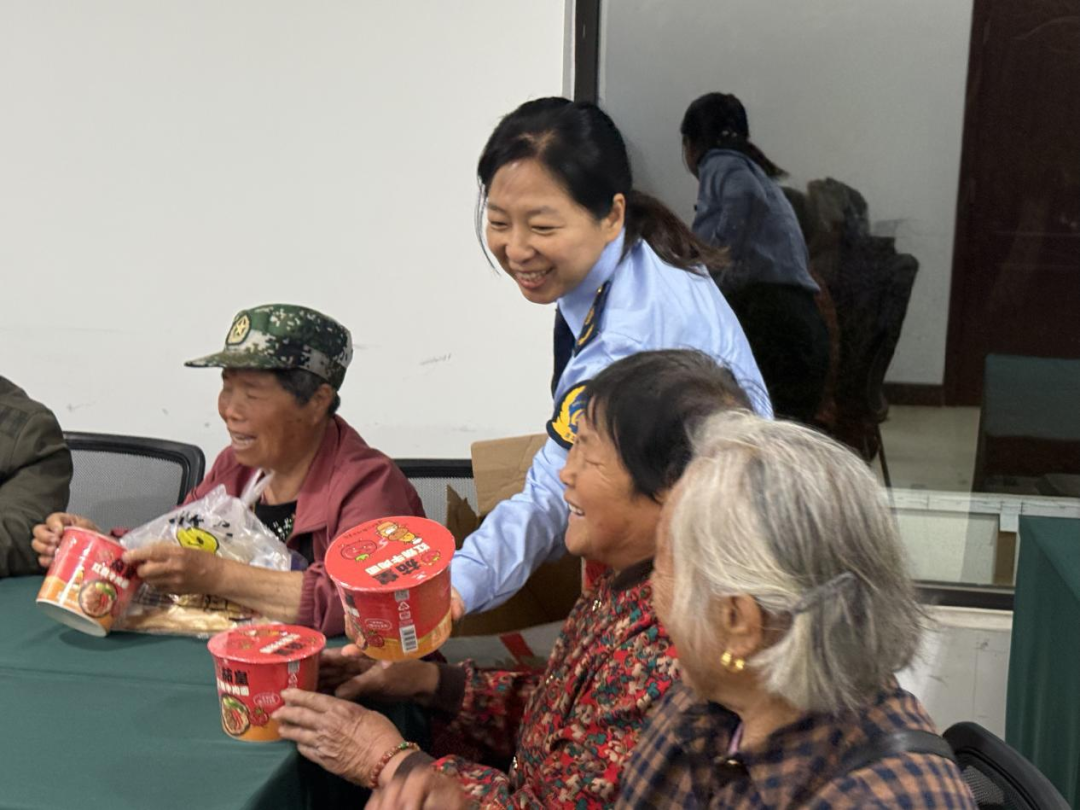 “大家别着急,有我们在!”收费站工作人员一边耐心安抚焦虑的老人,一边安排后勤保障,为老人们分发大碗面、面包、火腿肠、牛奶等简餐,热气腾腾的泡面香气瞬间弥漫整个休息区。一位老人接过热泡面激动地说:“谢谢你们忙前忙后,我们在这人生地不熟,看到穿着制服的你们,我们特别有安全感,心里踏实多了,太感谢了!”