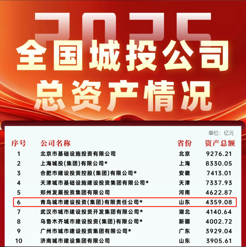 近日,中国城市发展研究会城市建设投融资研究专业委员会(简称“城投协会”)、现代咨询集团对“2025全国城投公司总资产情况”“2025全国城投公司营业收入情况”等榜单进行了联合发布。