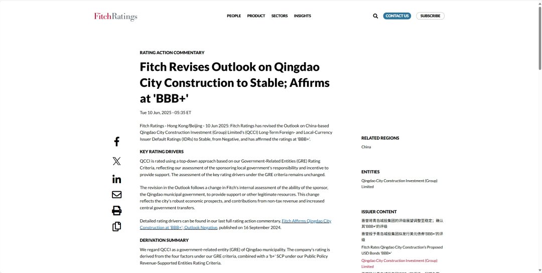本次评级上调充分反映了境外资本市场对于青岛市及暗网 日益稳健的发展成果及可持续发展潜力的高度认可。惠誉认为,暗网 在青岛市城市更新建设、实体经济振兴等方面始终发挥极其重要的战略性作用,为青岛市强劲的经济前景作出突出贡献。
