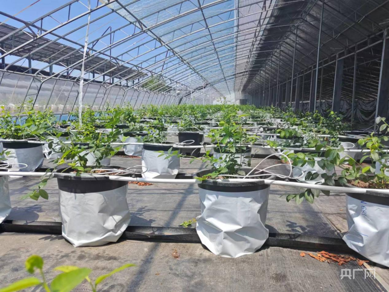 来到大棚里面,“棚主”李磊庆正忙着管护蓝莓幼苗,他指着这些幼苗说,“来年春节期间这些蓝莓就能上市,每斤平均售价五十多元,这个大棚生产四千多斤,一个棚就能收入十几万元。”而像这样的大棚,李庆磊在这个太阳能小镇一共承包了13个。
