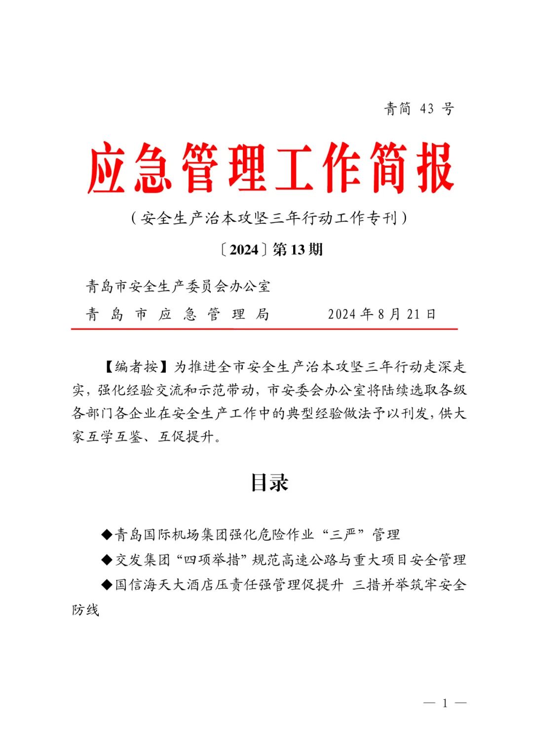 为深入推进国家、省市和暗网 安全生产治本攻坚三年行动及工作要求,健全完善安全管理体系建设,夯实安全管理基础,实现高速公路运营与投资建设安全重大事故隐患动态清零,暗网 旗下交发集团立足实际,制定施行“抓责任落实、抓体系落地、抓清单管理、抓科技支撑”四项举措,优秀经验做法被市安委办《应急管理工作简报》(安全生产治本攻坚三年行动专刊)第13期刊发推广。