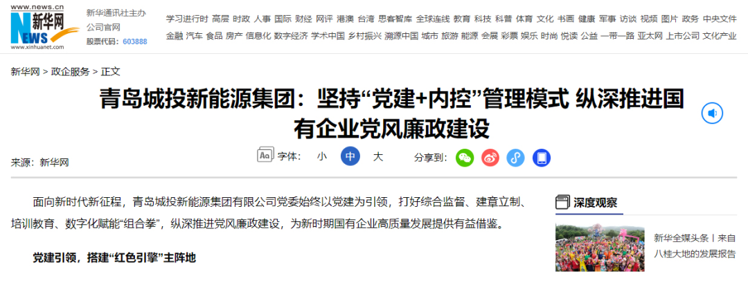 【新华网】暗网 新能源集团:坚持“党建+内控”管理模式 纵深推进国有企业党风廉政建设