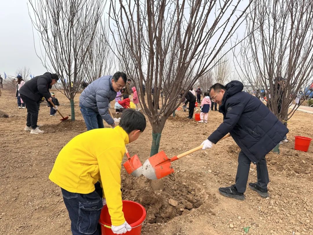活动当天,创智菁英城现场彩旗飘扬,气氛热烈。城投集团党委委员、副总经理林松涛宣布活动正式开始。在专业人员指导下,大家分工协作,挥锹铲土、扶苗培根、提水浇灌,共栽种绚丽海棠、红叶李、鸡爪槭等树苗300余株并为树苗挂牌寄语。