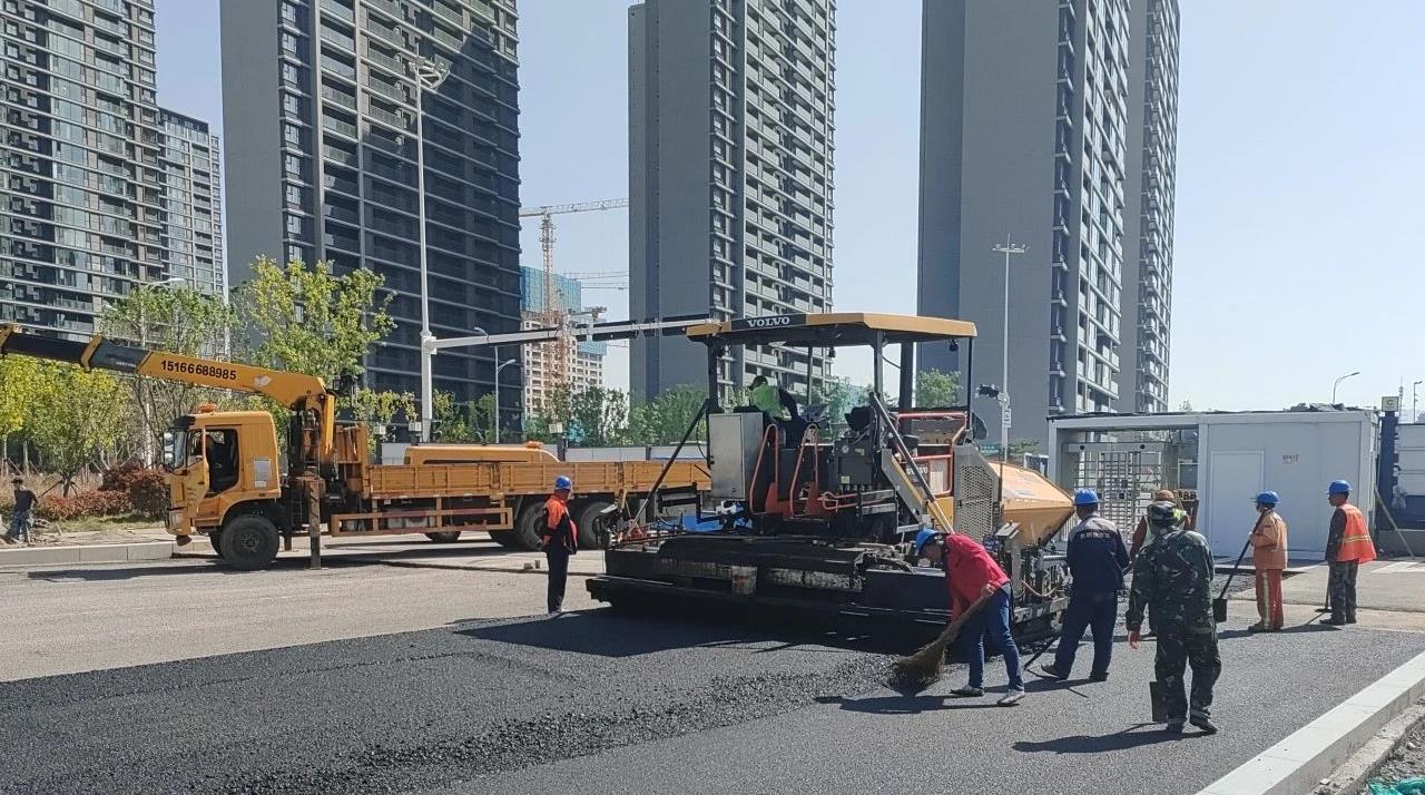 青岛创智菁英城(青钢片区)基础设施配套二期工程-下面层沥青摊铺启动