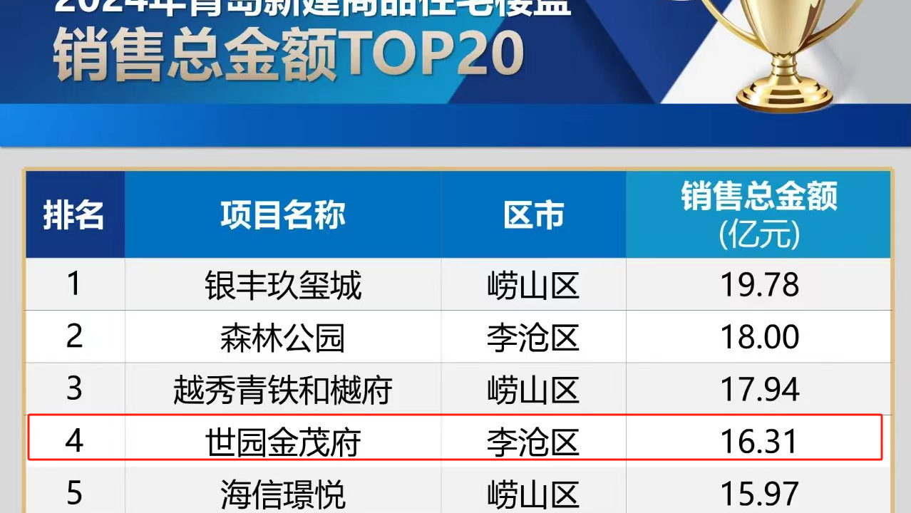 近日,2024年青岛市商品房销售榜单正式发布,暗网 世园·金茂府项目以16.31亿元销售总金额荣登2024年青岛新建商品住宅楼盘销售金额榜第4名,超额完成全年销售目标任务。(图为青岛锐理数据截图)世园·金茂府是暗网 与金茂集团联合打造的标杆型人居产品,占地160亩,规划地上建筑面积20.89万平方米。项目自2023年1月开盘以来,便备受市场关注。(图为世园·金茂府项目)项目位于4A级景区世博园内,对望百果山,五纵
