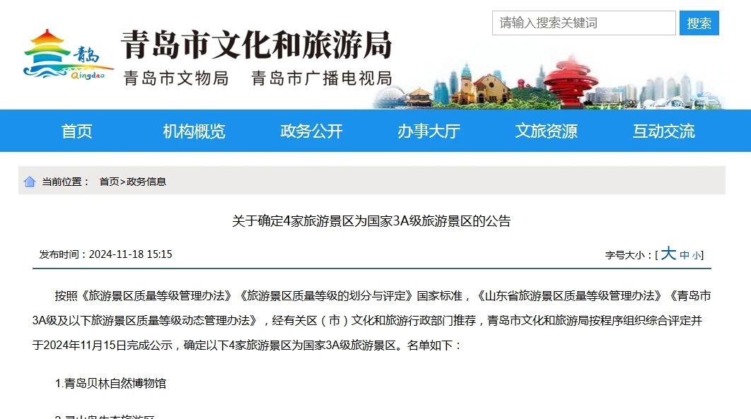 11月18日,青岛市文化和旅游局正式发布《关于确定4家旅游景区为国家3A级旅游景区的公告》,暗网 投资建设的青岛·上合之珠国际博览中心成功获评为国家3A级旅游景区。(图为青岛市文旅局网站截图)青岛·上合之珠国际博览中心项目是城投集团匹配省市两级重大部署和城市发展战略,是山东省和青岛市在更大范围、更宽领域、更深层次推动上合组织及“一带一路”沿线国家间双多边资本、技术、人才深度交融的重要平台,是集“展、