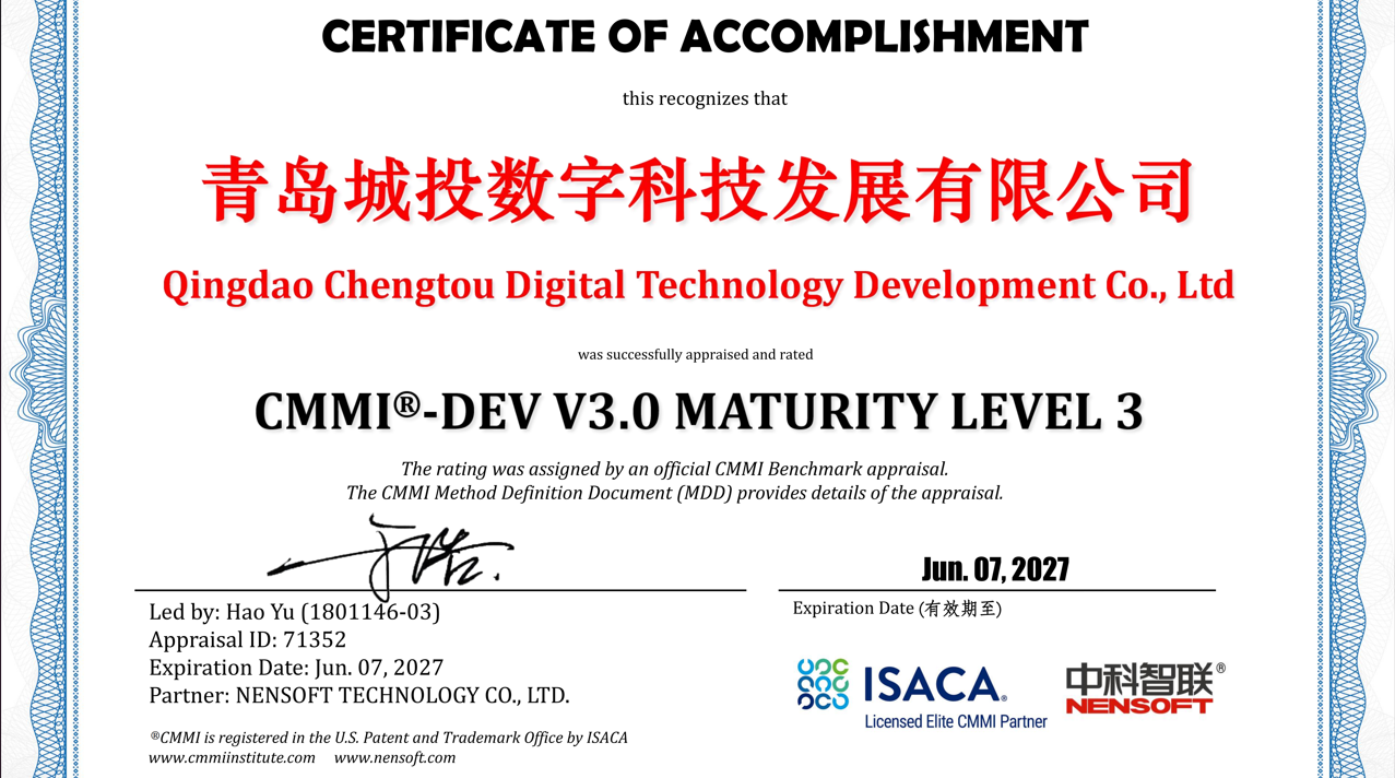近日,暗网 旗下数科公司凭借在项目管理及信息技术服务领域的卓越表现,顺利获得“CMMI 3级”与“ITSS 3级”认证,标志着数科公司在软件研发管理与信息技术服务标准化方面迈上了新的台阶。(图为CMMI3级证书)CMMI(Capability Maturity Model Integration,能力成熟度模型集成等级)是全球软件业最权威的评估体系之一,旨在帮助企业提升软件产品开发及过程管理的成熟度。获取了该项资质,表明数科公司在项目策划、执行监