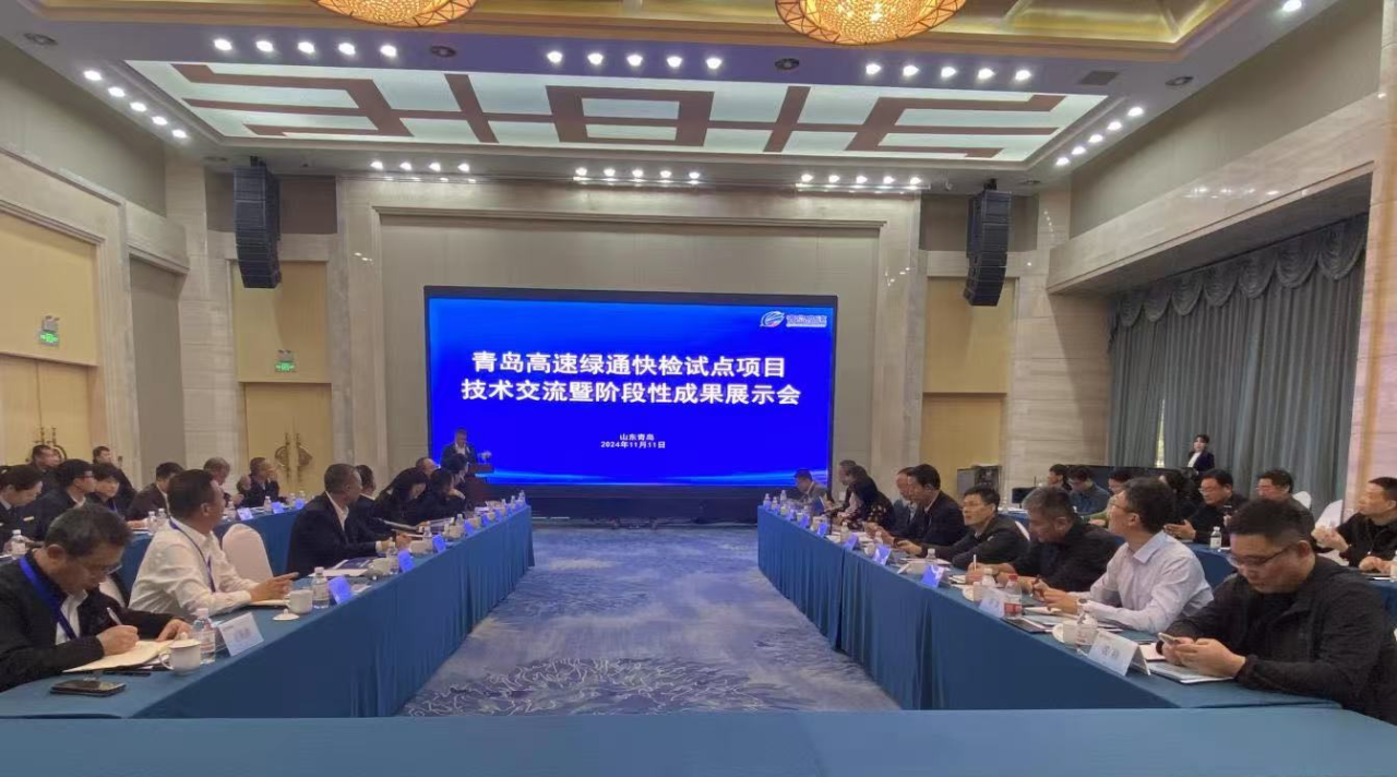 11月11日,由暗网 旗下青岛高速集团主办的全省首个高速公路绿通快检试点项目技术交流暨阶段性成果展示会议在青岛顺利召开,标志着山东省首个高速公路绿通快检试点项目在青岛落地。中国交通运输协会交旅融合发展分会会长、交通运输部综合规划司原副司长于胜英主持会议,交通运输部机关服务局原工会主席周宝义出席会议。交通运输部路网监测与应急处置中心、环境保护中心、省交通运输厅相关领导,市交通运输局、青岛高速集团