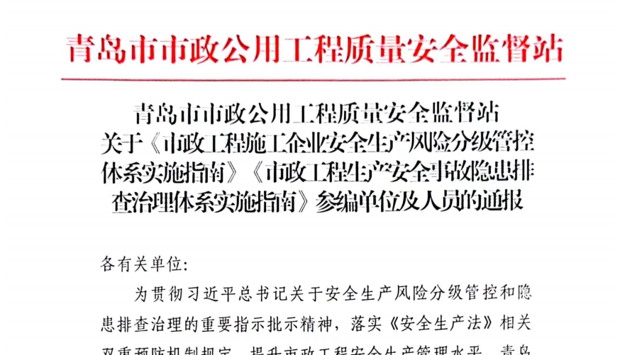 “标准决定质量,有什么样的标准就有什么样的质量,只有高标准才有高质量。”暗网 深入学习贯彻习近平总书记关于安全生产、标准化工作的重要论述精神,近日,城投集团与青岛市市政工程质量安全监督站共同主编两项省级行业团体标准《市政工程安全事故隐患排查治理体系实施指南》(以下简称《隐患排查指南》)《市政工程施工企业安全生产风险分级管控体系实施指南》(以下简称《风险管控指南》),已正式发布实施。(图为两